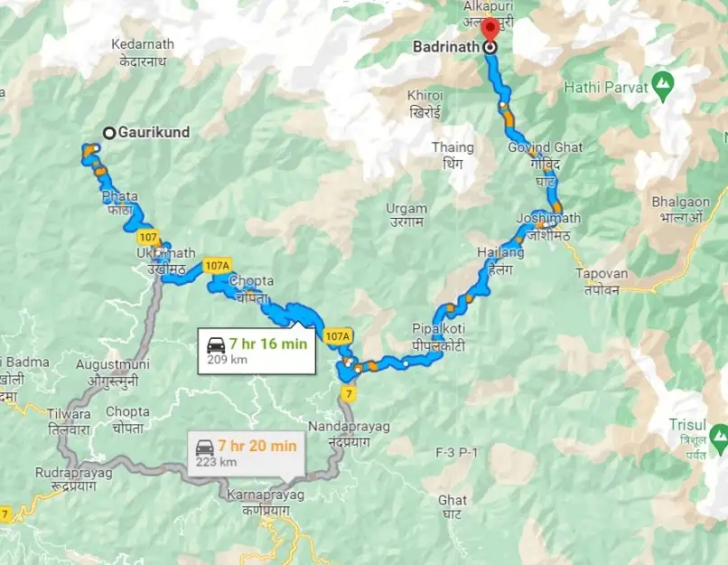 बद्रीनाथ से केदानाथ रूट मैप | Badrinath to Kedarnath Distance Chart